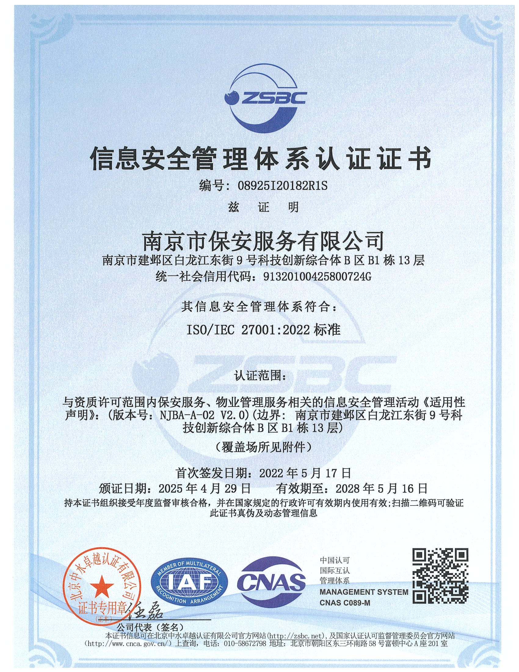 Established in April 1987, Nanjing Security Service Co., Ltd. is a large state-owned security enterprise with a long history of security operation and rich security experience. Now it is a managing director of both? China Security Association and Jiangsu?Security Association, vice president of? Nanjing Security Association, one of the top class security service companies in Jiangsu Province.